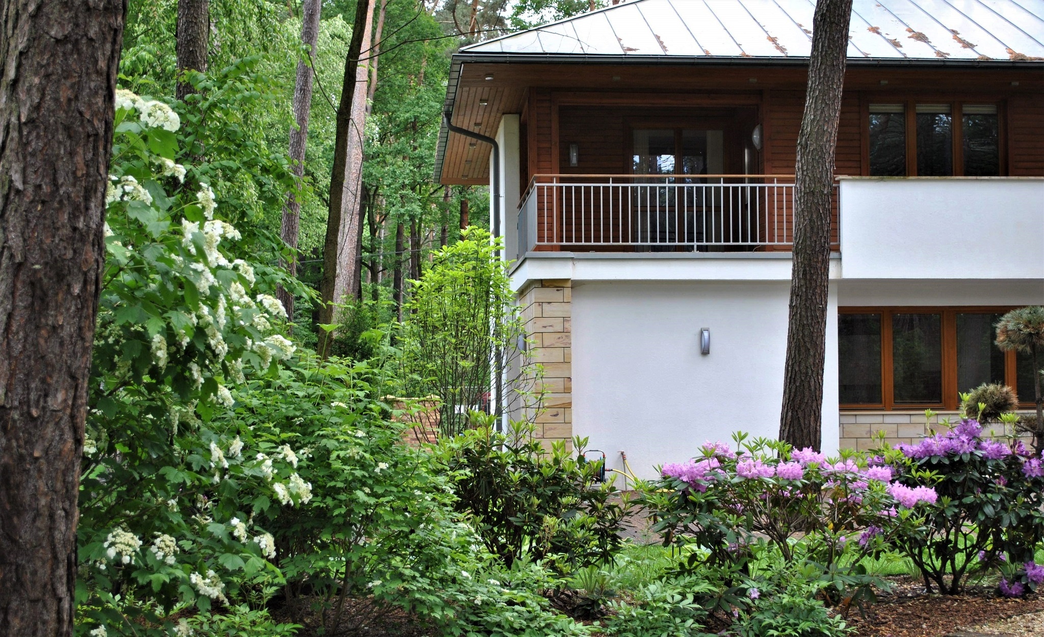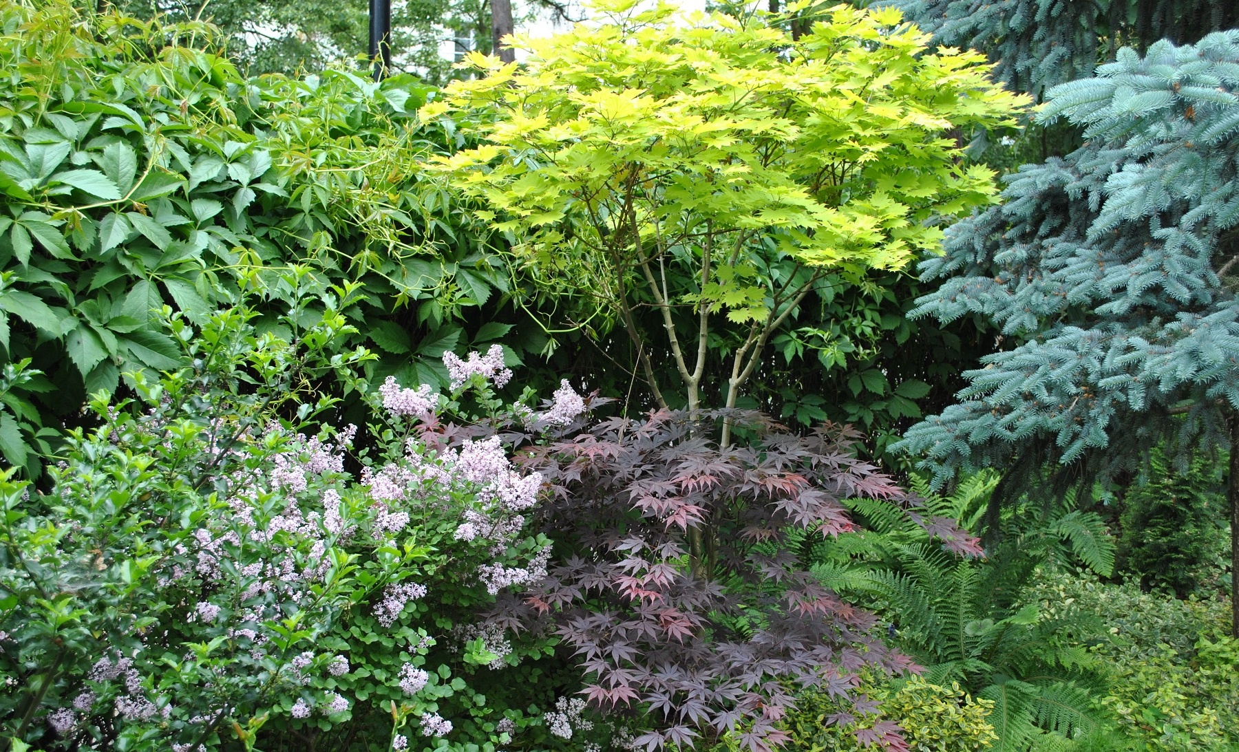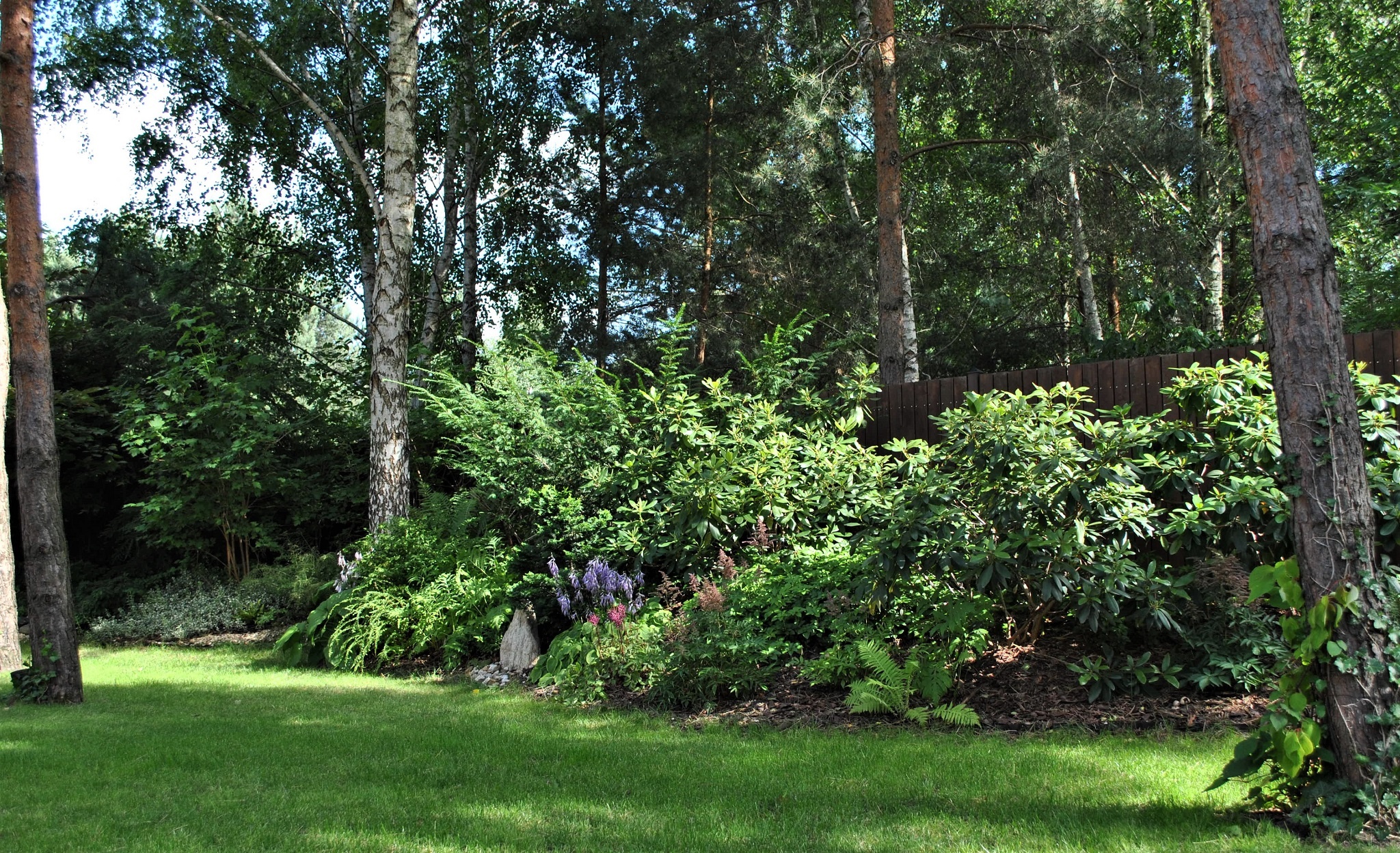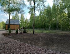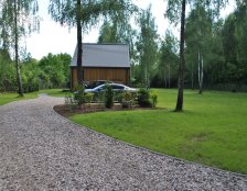 Ogród o powierzchni podnad 4000m2 został tak zaaranżowany aby zminimalizować prace pielęgnacyjne do niezbędnego minimum. Działka wraz z letniskowym domkiem jest użytkowana sezonowo stąd potrzeba traktowania ogrodu jako odpoczynku i miesjca gdzie można zregenerować się po tygodniu pracy.