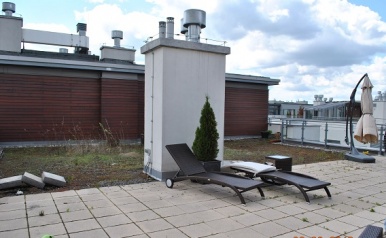 Ten taras mieszczący się na czwartym pietrze, ma wszystko co najlepsze...w ogrodach.