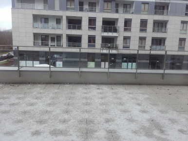 Prostokątny taras nad garażem o powierzchni 120m2.