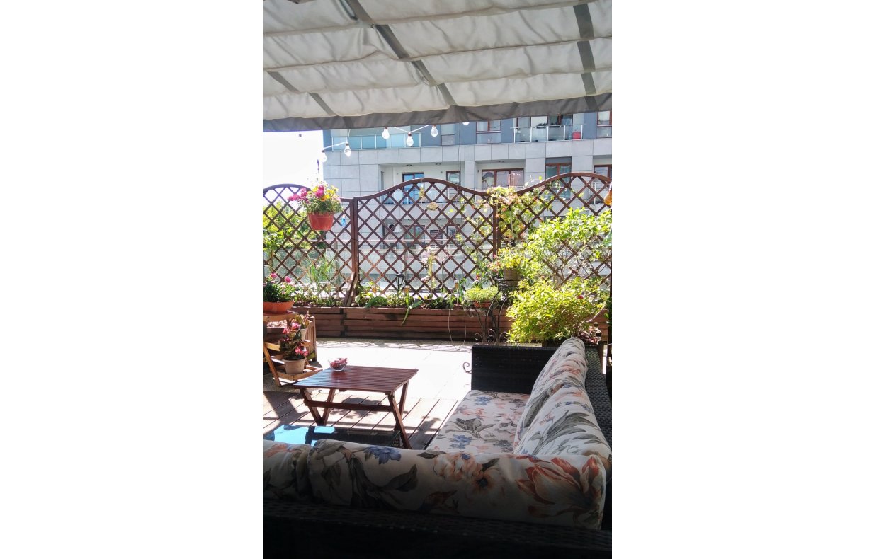 Pod meblami wypoczynkowymi, częściowo została wymieniona podłoga z płyt betonowych na drewnianą.