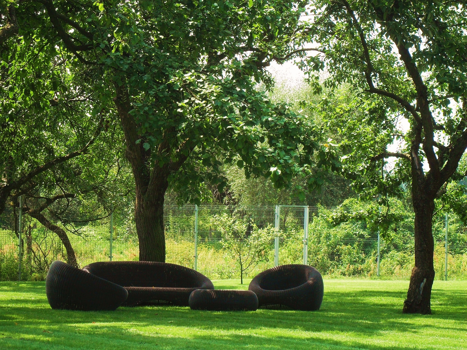 Miejsce pod każdym względem piękne i wyjątkowe. Teren okalający dom ma ponad 6500m2. Ogród został zaplanowany swobodnie i swej formie nawiązuje do otaczającego go krajobrazu. Rabaty podkreślają istniejące, stare nasadzenia: sad Antonówek oraz szpalery fioletowo kwitnącego lilaka. Wprowadzona roslinność ma tylko podkreślać naturę, urozmaicać ciemną zieleń krzewów i drzew. Naturalistyczny pomysł na ogród pięknie kontrastuje z surową i nowoczesną bryłą budynku mieszkalnego oraz dekoracji ogrodowych.