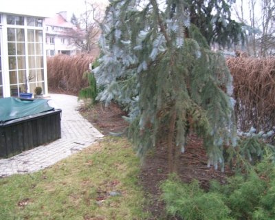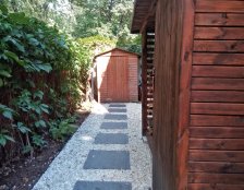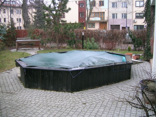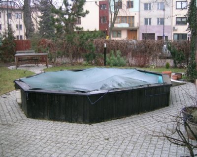 Na działce o powierzchni 450 metrów był zamontowany basen oraz kilka placów z kostki.