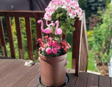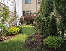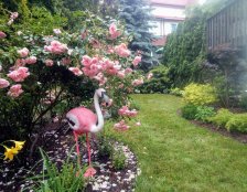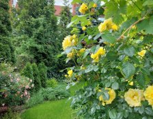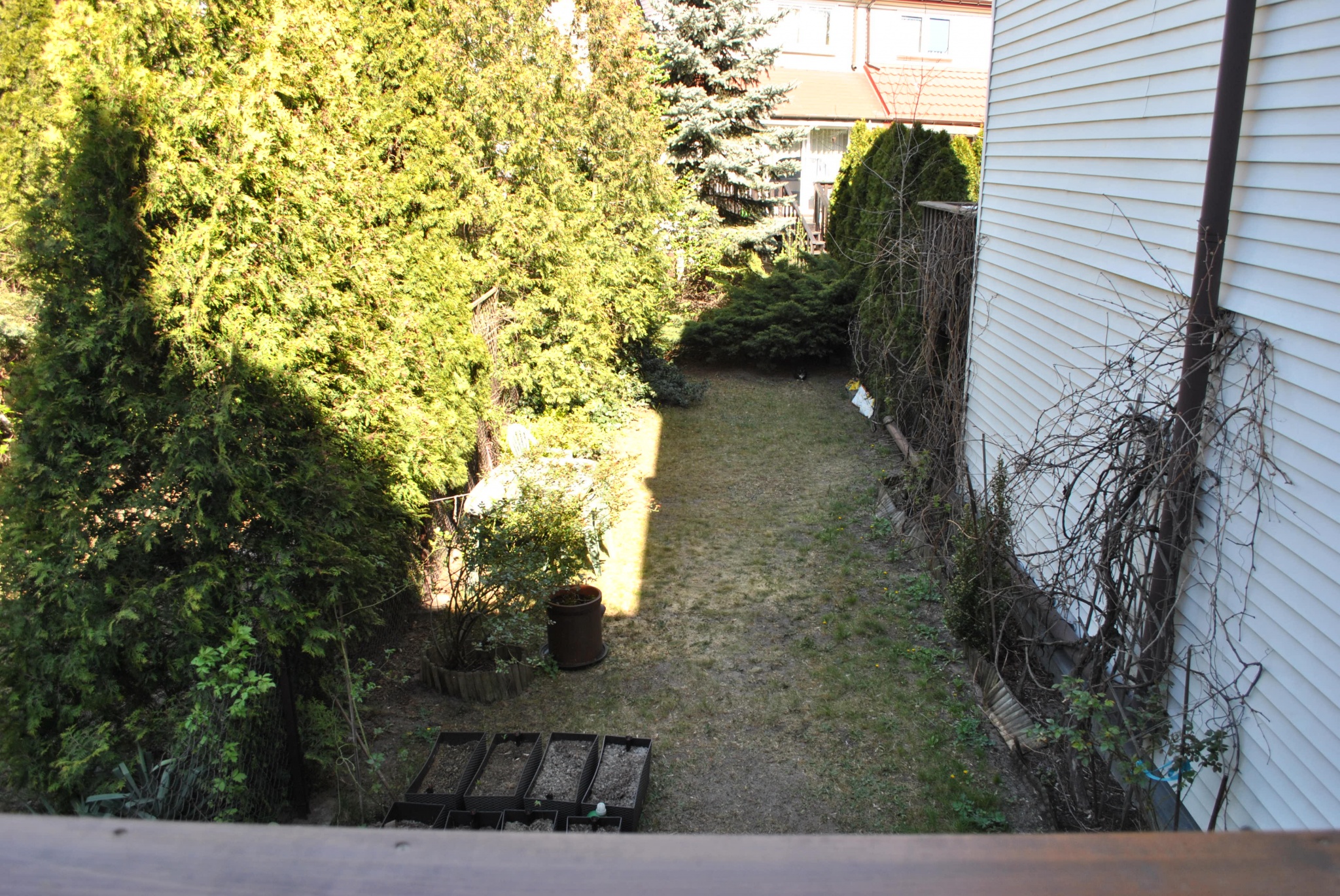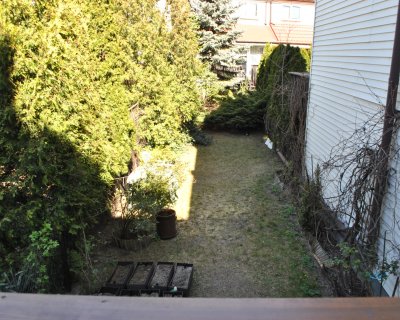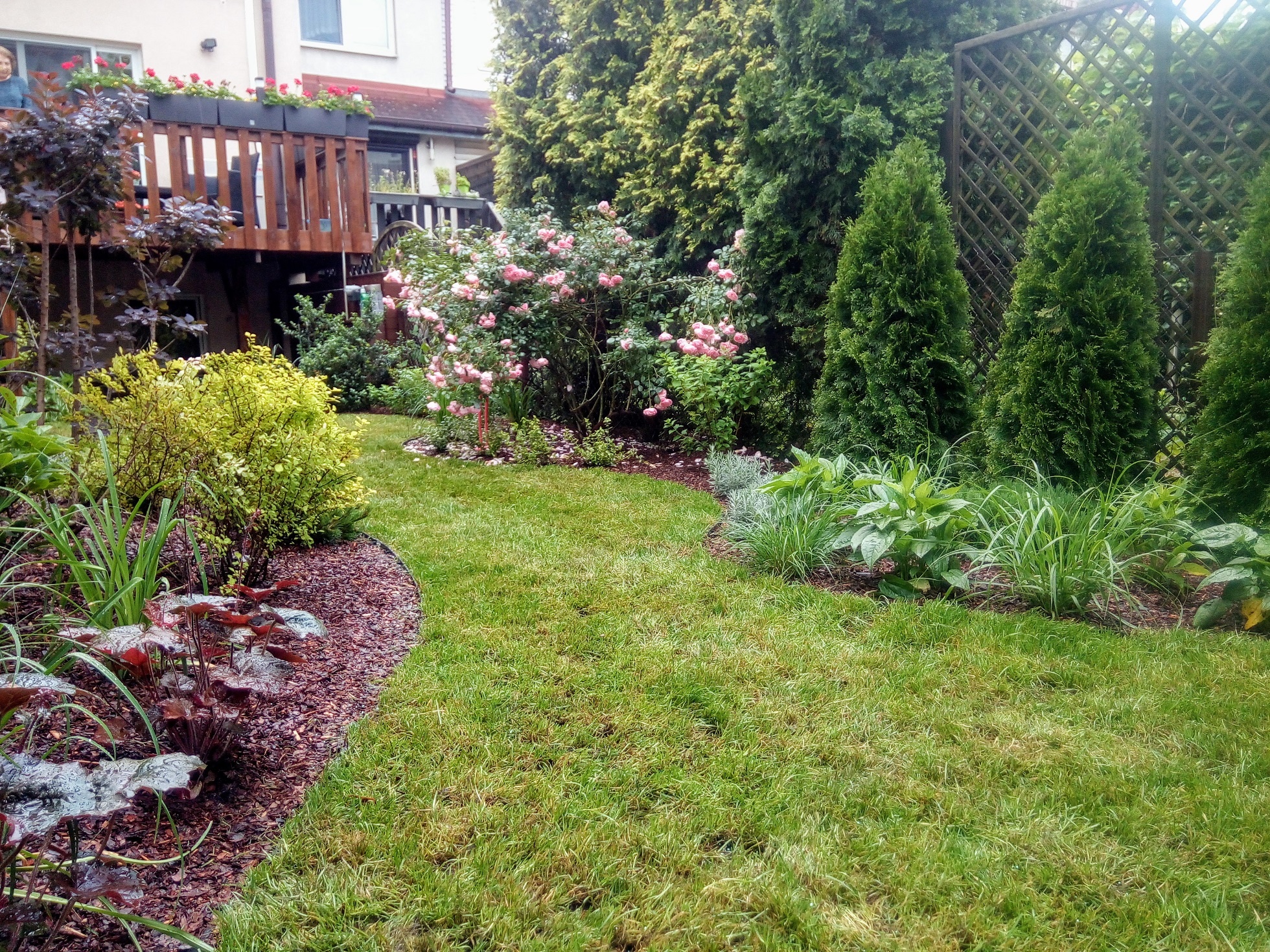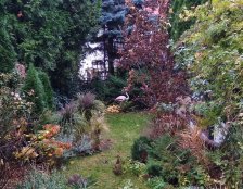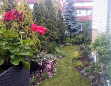 Długi, wąski ogród został całkowicie przearanżowany. Zostały wytyczone nowe rabaty kwiatowe okalające ogród z trzech stron. Rośliny sa posadzone piętrowo a ich wysokość zmniejsza się do środka ogrodu. Rabaty są mocno zarośnięte i bardzo zróżnicowane fakturowo i kolorystycznie. Rośliny zostały dobrane tak, aby ozdabiały ogród cały rok. Kompozycje kwiatowe zostały wzbogacone o trawy ozdobne, niskie krzewy zimozielone i cebule kwiatów kwitnących wiosną: tulipany, szafirki i pachnące narcyzy.